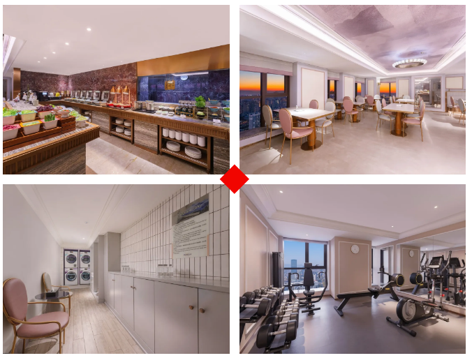 酒店配套设施齐全,餐厅、健身房,洗衣房一应俱全。酒店房间配置丰富,拥有大床房、亲子大床房,双床房、城景房共计101间,可充分满足宾客多样化的居住需求,不同房型各有特色,满足不同宾客需求。