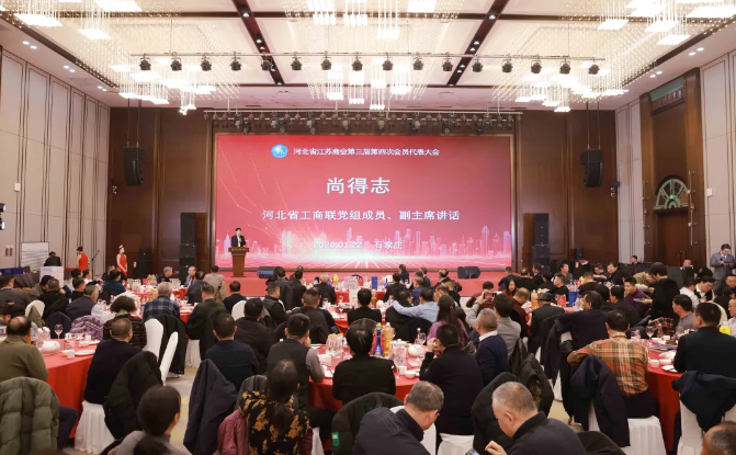 1月22日,河北省江苏商会第三届第四次会员代表大会暨迎新春联谊活动在石家庄浅金嘉年华酒店隆重召开。河北省工商联党组成员、副主席尚得志出席会议并讲话。石家庄市江苏商会会长陆洪兵,保定市江苏商会会长花粉远,唐山市江苏商会会长陈红,邢台市江苏商会会长曹翠军,邯郸市江苏商会会长张鑫,衡水市江苏商会会长毛明安,廊坊市江苏商会会长张明忠及河北省各地市江苏商会代表、驻冀乡贤、商会会员300多人共襄盛会,乡音缭绕,情谊盎然。