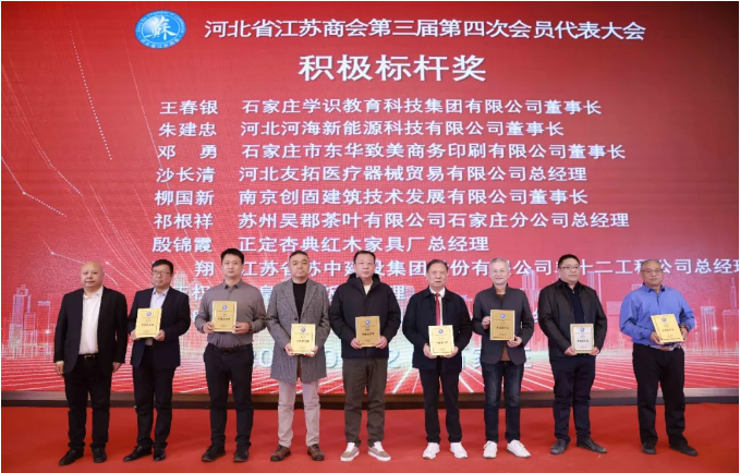 河北省工商联党组成员、副主席尚得志为获得“苏商领军者”的陆洪兵、陈红、花粉远、张鑫、毛明安、徐桂荣、曹翠军、张明忠颁发了奖牌;