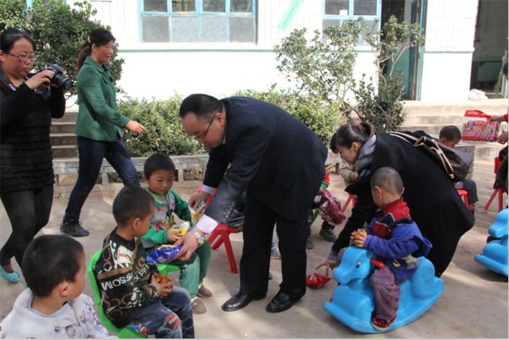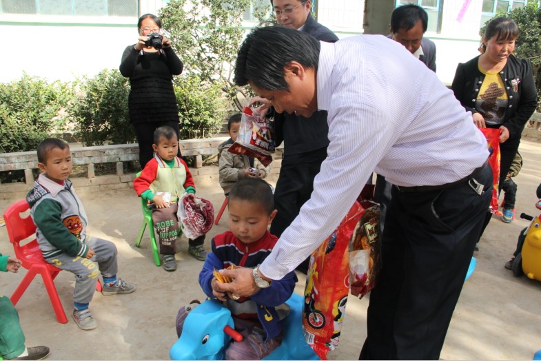 捐赠仪式结束后,常务副会长赵仁华、赵新民,副会长朱中华在董五洲副县长的陪同下来到幼儿园孩子们中间,给他们送上小食品,祝福他们健康快乐成长。