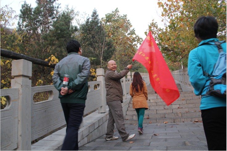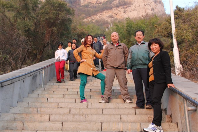 27日早7点,参加登山活动的会员们准时齐聚抱犊寨山下,十月的抱犊寨,秋高气爽层林尽染,一片姹紫嫣红令人陶醉。在醉人的景色中,使人心旷神怡,会员们纷纷合影留念。副会长朱中华宣布了登山过程中的注意事项后,大家便兴致勃勃的开始了登高之旅。