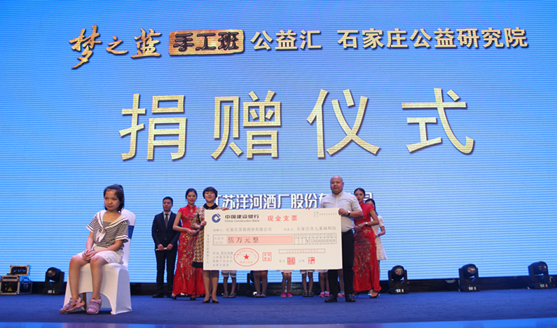 启动仪式现场,我会副会长单位、苏酒集团经销商——石家庄苏商商贸有限公司代表苏酒集团所有经销商向石家庄市儿童福利院捐赠了5万元善款,以此表达苏商对儿童福利院小朋友们的深切祝福。