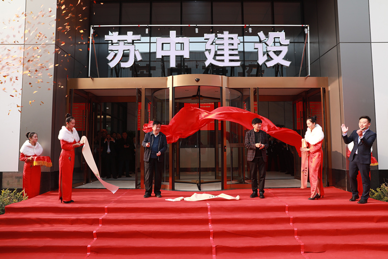 苏中建设集团笪鸿鹄董事长、河北省建筑业协会方永山会长为京津冀区域公司剪彩揭牌。