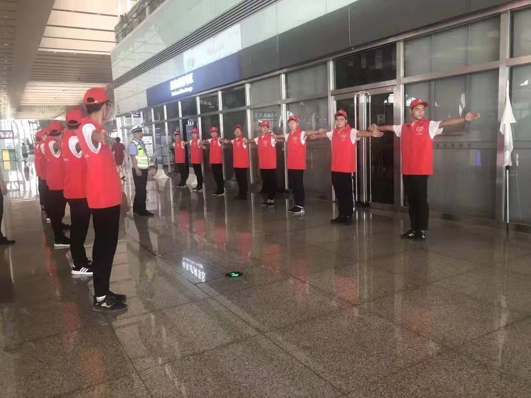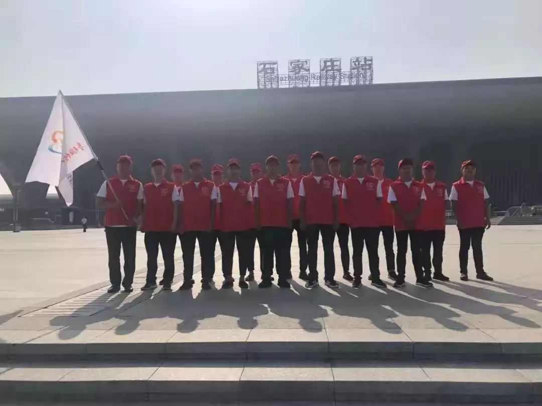 “青春志愿行、共筑中国梦”,7月12日上午, 我会常务副会长单位——达欣集团鲁班传人志愿服务队第四分队在石家庄火车站举行志愿服务活动启动仪式,石家庄铁路公安处交通管理支队支队长冯东蛟、副支队长陈蔚涛、支队辅警、第四工程公司经理助理徐祝军以及16名志愿者参加活动。