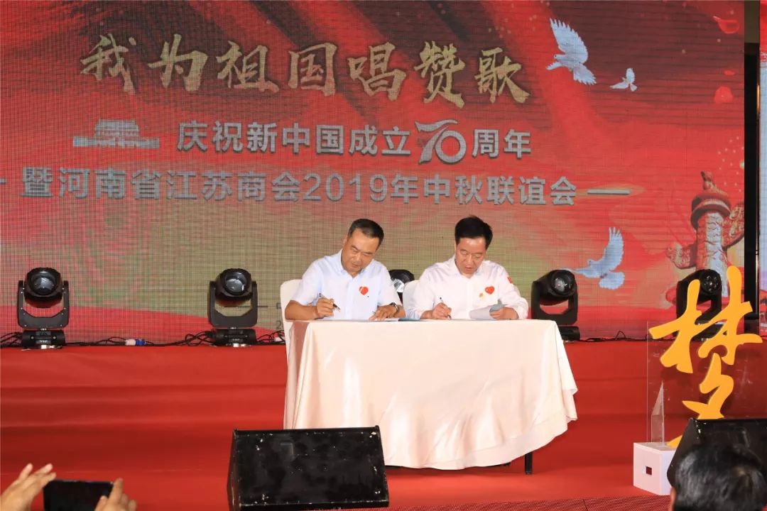 当天晚上,河南省江苏商会还举办了“我为祖国唱赞歌”庆祝新中国成立70周年暨2019年中秋联谊活动,与会会长、秘书长同河南省江苏商会会员近400人欢聚一堂,共度中秋佳节,喜迎民族盛会,欢庆祖国华诞!
