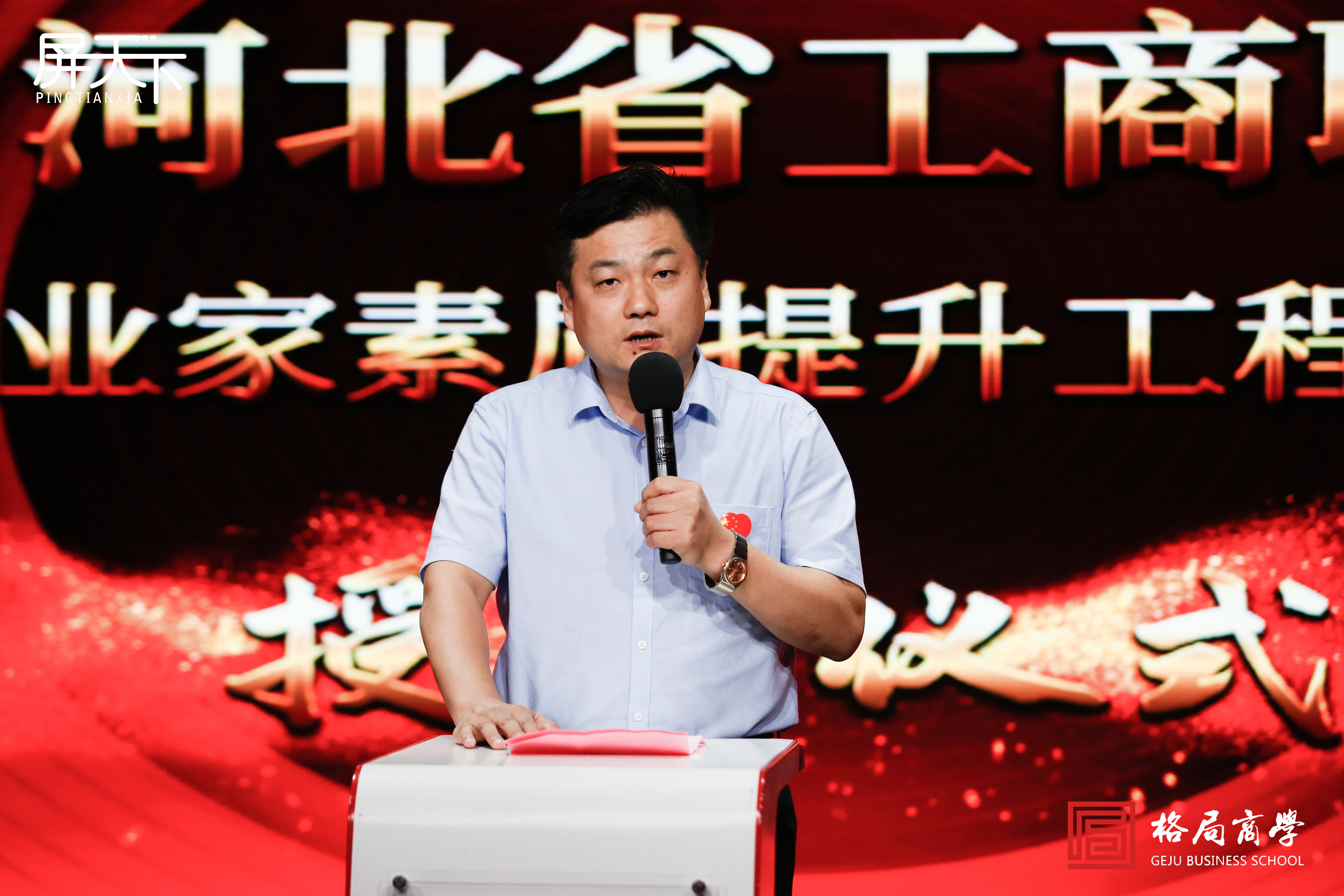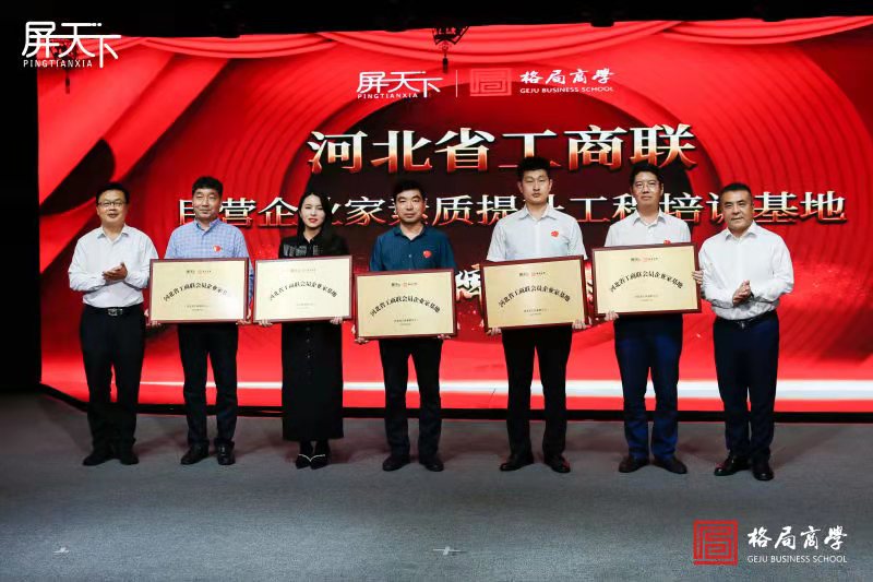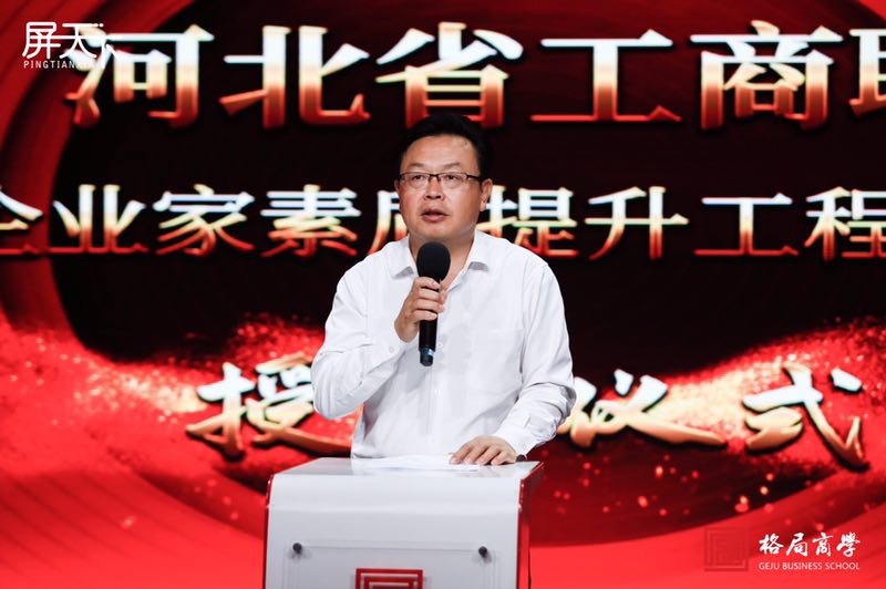 为充分整合发挥社会各方面机构资源作用,创新做好河北省民营企业教育培训工作,深化河北省工商联“不忘初心、牢记使命”主题教育成果,经与格局商学对接洽谈,河北省工商联决定在全省格局商学各分院设立“河北省工商联民营企业家素质提升工程培训基地”。9月11日,在格局商学北京总部举办了揭牌仪式。河北省工商联党组成员、副主席、机关党委书记王慧林,格局商学总设计、创始院长邢志清共同为各分院授牌并讲话。河北省工商联宣教处负责同志和全省格局商学各分院负责人、部分商(协)会和民营企业家代表、全国300多个格局分院学员在各所在地一同见证。我商会常务副会长王高俊代表河北省江苏商会并作为民营企业家代表和商协会代表出席了授牌仪式并发表演讲。