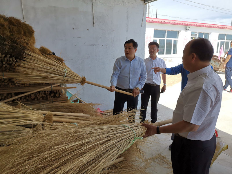 在蒙古旗杆村枳芨编织厂,茅兵一行实地查看了村产业的发展情况,并当场达成了帮其长期销售枳芨草扫帚的意向。茅兵等商会领导表示,到2020年我国现行标准下农村贫困人口实现脱贫,是以习近平同志为核心的党中央向全世界人民作出的庄严承诺。河北省江苏商会有责任也有义务投身到党和国家扶贫开发工作大局中来,下一步商会将研究具体帮扶措施,帮助贫困群众加快脱贫致富步伐,为实现“小康路上不落一人”全面打赢脱贫攻坚战做出新的更大贡献!