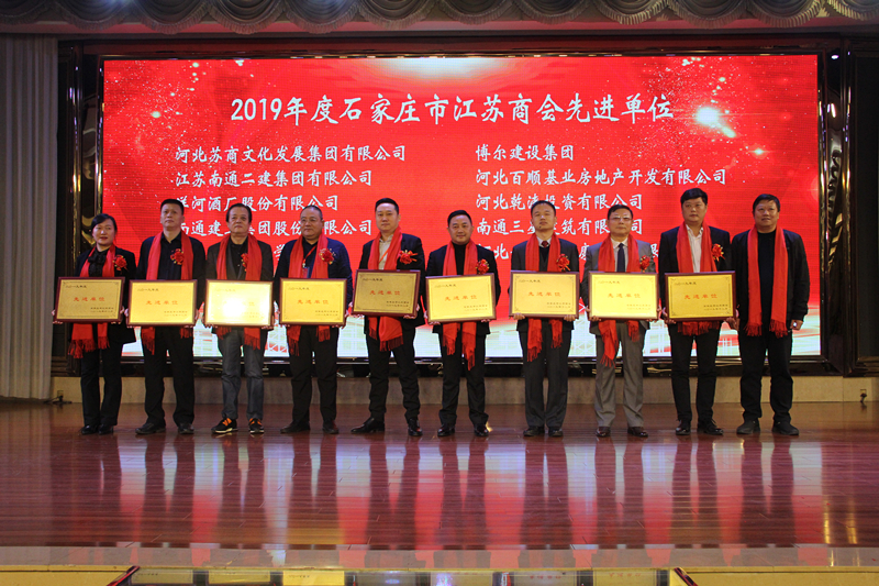 会议对石家庄市江苏商会2019年工作、党支部工作和监事会工作进行了总结,对2019年度先进单位、先进个人和优秀党员进行了表彰,并对新当选的常务副会长、副会长进行了授牌。