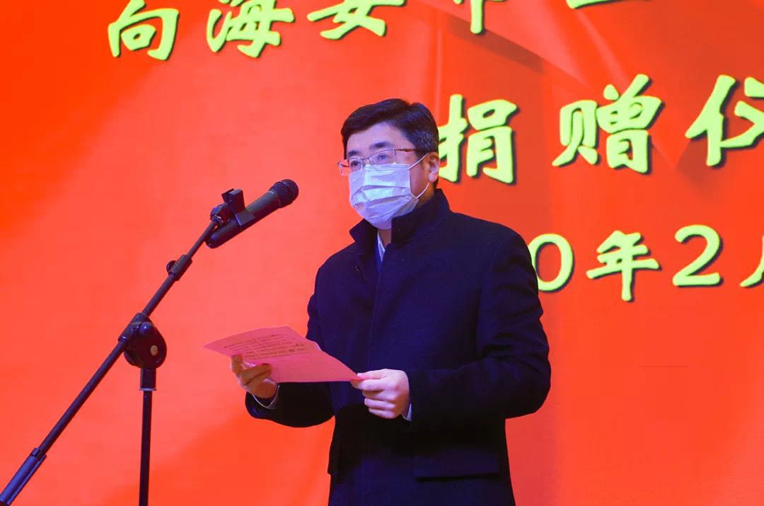 捐赠仪式上,笪鸿鹄董事长代表捐赠方发言。他表示,突如其来的疫情牵动着全国上下,作为海安本土施工企业,苏中建设理应积极配合、承担责任、奉献爱心。苏中建设长期以来是富有社会责任的企业,在非典、汶川地震等重大灾害中都奉献了自己的爱心,苏中人虽然长年在外 ,但我们根在海安,心在海安,支持家乡事业发展,是我们的心愿也是我们的责任!让我们携起手来,战胜疫情,共迎春暖花开,共建大美海安!