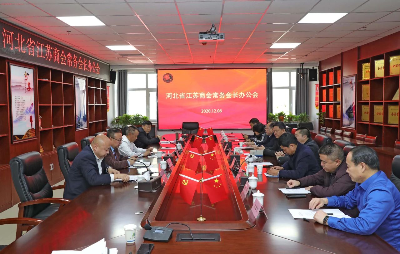 12月6日,河北省江苏商会常务会长办公会在汇龙国际商会会议室召开,会长王义宏出席会议并讲话,执行会长茅兵,党支部书记邹一峰,监事会主席丁从桂,常务副会长包信全、云元枝、杨静、杨勇、夏苏闽、仇建刚、朱华山、郭可钰参加会议。
