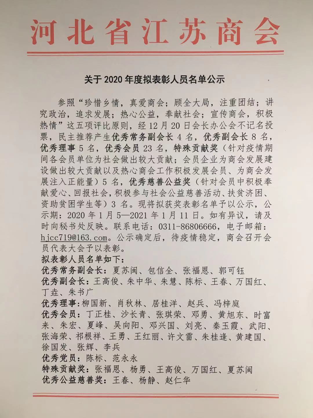 关于2020年度拟表彰人员名单公示