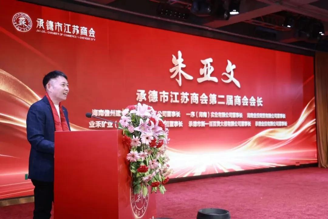 新当选会长朱亚文作表态发言,承诺将秉持“团结、服务、创新、发展”宗旨,整合苏商资源,助力会员企业发展,深耕承德经济建设,推动苏承两地协同共进。