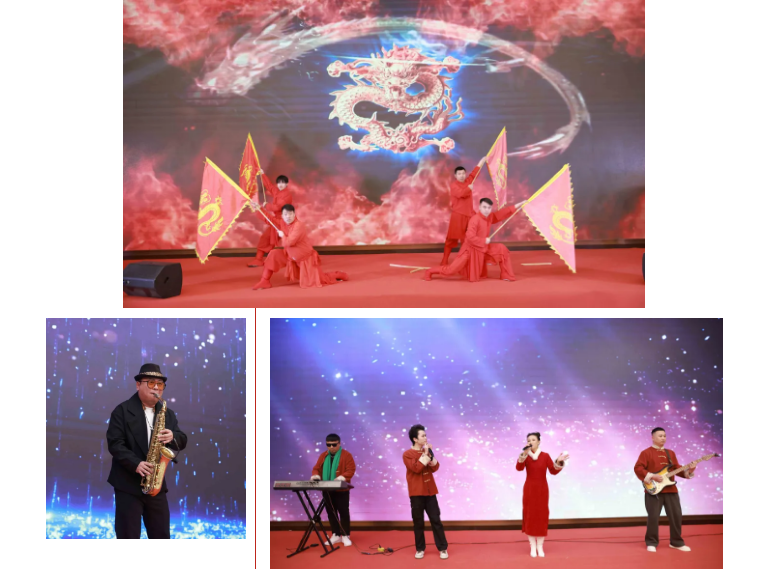 随后举行的迎新春联谊晚会,将喜庆祥和的气氛推向高潮。美酒佳肴承载着浓浓乡情,精彩节目演绎着活力激情。《奔跑》的旋律激荡人心,《歌唱祖国》的歌声澎湃激昂。