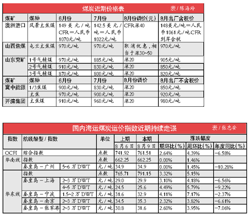 本报讯 (记者陈海玲)进入8月份,焦煤价格悄然上涨,涨幅为2%~5%不等,但动力煤仍在下跌。受煤价起色及7月份工业生产企稳加速的影响,煤炭股一个月拉升近15%,仅昨日便上涨7.8%。不过专家提醒,未来煤炭股继续大幅上涨的动力尚未看见。