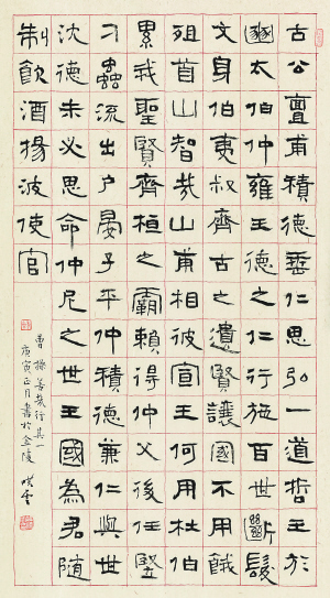 今天的书法家,如果仅仅追求独善其身,是远远不够的。书法文化传承和创新是国家的百年大计,任重而道远。笔者呼吁,通过我们这一代人的努力,以我们自身的书法创作实践成果,来影响当代以及今后,在书法早已和实用无关的今天,让"字如其人"、"字如心画"重新成为我们应该接续的人文传统。当代书法创作,要到丰厚的历史积淀中追寻和探求,回归传统,重温经典,要成为当下书法艺术创作的主流。书法决不能在我们这一代终结。