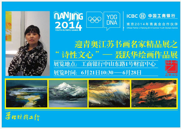 6月21日下午三点,“诗性文心——聂跃华绘画作品展”将于工商银行中山东路1号财富中心三楼举行,展出聂跃华的水墨、油画作品六十余幅。据悉,展览将于28号结束。聂跃华,中国美术家协会会员、北京水彩画会副秘书长、吴冠中艺术研究中心研究员、现任清华大学美术学院硕士生导师。她的笔下,既有长江文化温和的诗性养分,又接受了北方文化辽阔、苍茫和宏大气势的熏陶。这些,透过她特有的秉赋,结合成一种刚柔相济、情理交融的艺术特质,表现在她色彩丰富、构思瑰丽奇幻的绘画作品中。