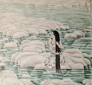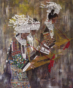 孙健彬深爱苗乡,他动情地说:“这里是一块未受污染的生态文化净地,是人类返璞归真回归大自然的理想王国……”正是这种挚爱之情思,促使他反复地描绘和表现苗乡苗女,无论是暖色调的《苗岭的早晨》还是冷色调的《银河》,都给人以丰富独特的文化联想和真、善、美的艺术享受。