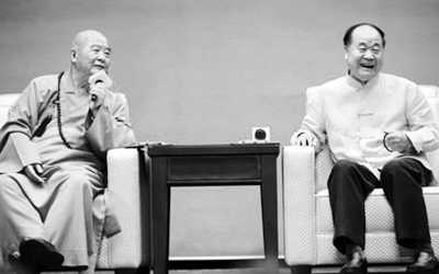 星云法师与莫言对谈 图片来源:中新社 |