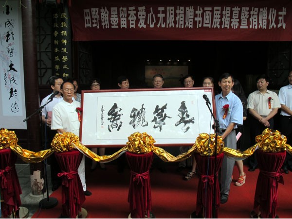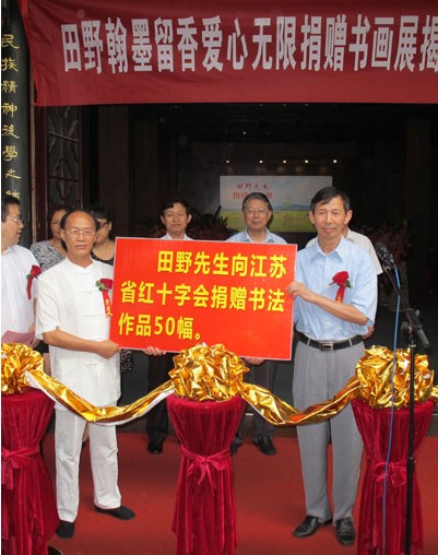 中国江苏网9月1日讯(记者 高利平):今天上午,“田野翰墨留香爱心无限捐赠书画展暨捐赠仪式”在秦淮瞻园博物馆举行,著名书画家田野的近百幅书画作品将在这里展出8天。同时,田野先生将其中50幅书画作品全部捐赠给江苏省红十字会,以表达他对慈善事业的一片爱心。