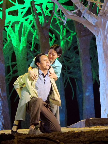 《枫树林》由中国戏剧家协会副主席孟冰编剧、国家一级导演宫晓东导演,江苏省文化厅组织策划并投资300万打造。作为首届江苏艺术展演月的开幕大戏,《枫树林》在开演前就受到了极大的关注。该剧讲述了一个得了绝症的南京郊区枫树村村官向南生命最后90天的故事。和传统的主旋律话剧不同的是,向南并不是一个完美的艺术形象,他有人性上的弱点,但是他肯正视,肯忏悔,并在生命即将结束时尽力追求真善美。向南老婆孙玉华是剧中的女一号,围绕她而展开的一些戏份,也使得全剧更加丰满、真实。