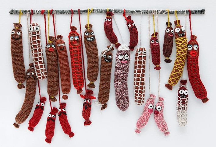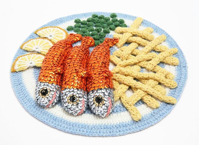 在这一组非比寻常的美食照片中,有电眼香肠,拥有精致小脸的炸薯条,小胡子的墨西哥卷等。这些用钩针编织出来的手工精品出自英国艺术家Kate Jenkins之手。