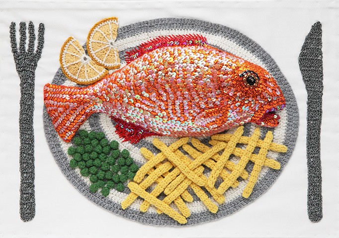 詹金斯觉得这项艺术很有趣,她用钩针编织的双关语来命名自己的作品。丰富的色彩和细致的纹理足以使她钩编的“食物”以假乱真。