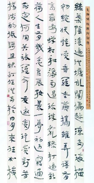 现任中国艺术研究院中国书法院院长、江苏省国画院副院长、江苏省书法院执行院长、中国书法家协会理事的管峻,先后荣获第七届第八届全国书法展”全国奖、“第四届全国中青年书法篆刻展”一等奖、“首届林散之奖全国书法展”金奖等诸多荣誉。管峻的创作面很宽,书法正草隶篆、绘画花鸟山水都有涉猎,其作品透示着他对传统文化、对一种强大的古典精神的膜拜与崇敬。他的隶书来自于汉隶和明清诸家,结合篆书的古意和印章的借代腾挪,偶尔加进一些简帛的元素,巧拙成趣、儒雅高古、廻然出新;他的大草得古往经典正脉,二王、怀素、山谷、青藤等皆为所用,草法地道纯正,且法外求法、勇于突破。他的篆书出自清代赵之谦、邓石如诸家,笔力雄健,洒脱自如,富有新意;他的楷书写得清新脱俗,笔笔爽利到位,堪与古人比肩;他的绘画始终保持着那种清新怡然、雅俗共赏的格局,精粹唯美,令人赏之如沐春风秋光。