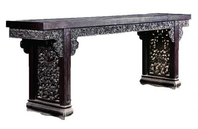 清乾隆紫檀雕西番莲大平头案 资料照片