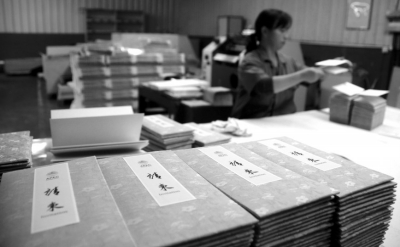 在印刷厂赶制车间,我们见到了正在印刷的请柬,为防止意外,每一本请柬都需要备份多份,并反复推敲每一个环节的制作,不断修改。